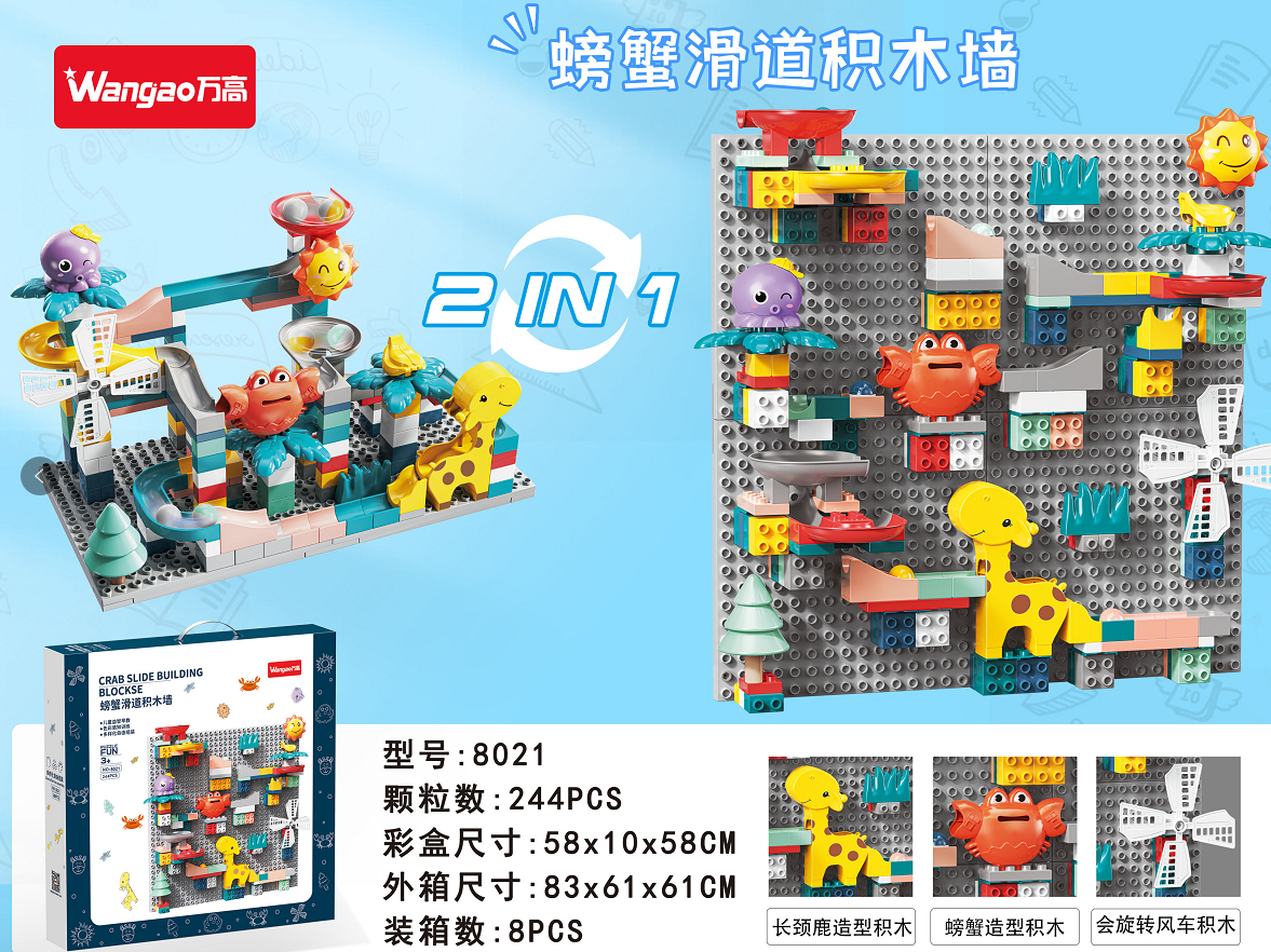 螃蟹滑道積木墻244顆粒(含51X51CM加厚底板)